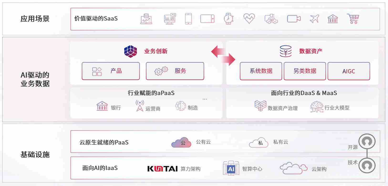 数字时代,,,,围绕企业数字化转型的关键要素,,,,z6com尊龙数码开创性的提出数云融合战略和技术体系框架,,着力在云原生、、、数字原生、、AI原生和信创产业上架构产品和服务能力,,,为处在不同数字化转型阶段的快消零售、、、汽车、、金融、、、、医疗、、、政企、、、教育、、、运营商等行业客户提供泛在的敏捷IT能力和融合的数据驱动能力,,构建跨界融合创新的数字业务场景和新业务模式,,,,助力企业级客户建立面向未来的核心能力和竞争优势,,,,全面推动社会的数字化、、、智能化转型升级。。。